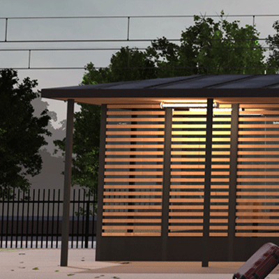 Dans la cadre de la création de la ligne 01 de tramway de la ville de Tours : Restructuration de l’aile Ouest de la gare. Création d’une nouvelle entrée de gare en collaboration avec l’artiste Daniel Buren.